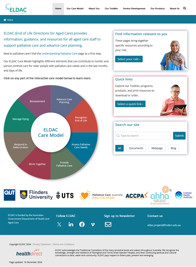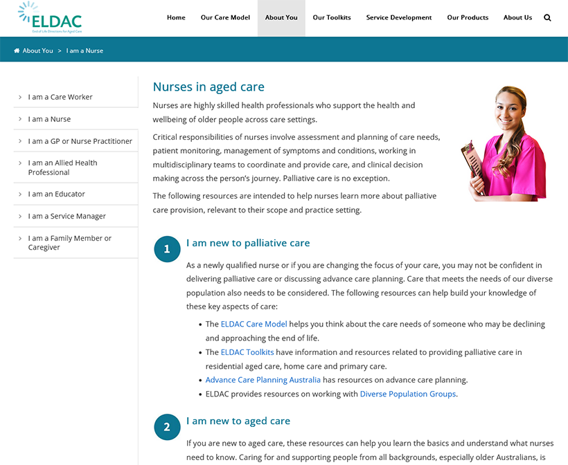 The reason why we sought to redevelop the ELDAC website is to help users easily access information and resources needed to provide good quality palliative care and end of life care. This is why it was important to be guided by a user-centred, co-design process when developing the new website.
