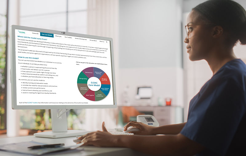 The ELDAC Care Model shows aged and primary care staff a way to think about the needs of older people who may receive a palliative care diagnosis and/or who may be declining and approaching the end of life.