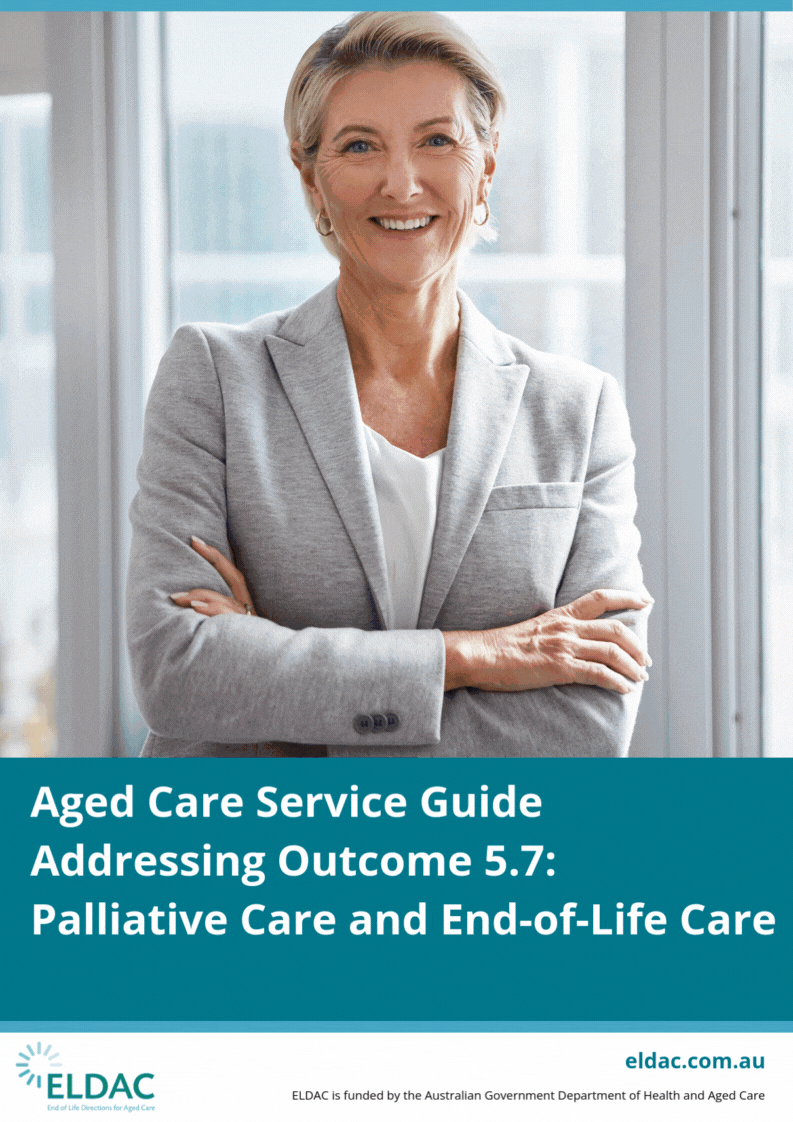 To support the aged care sector, ELDAC has developed a free Aged Care Service Guide – Addressing Outcome 5.7: Palliative Care and End-of-Life Care.